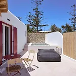 Οι επισκέπτες μπορούν να κάνουν μπάνιο σε πισίνα για να χαλαρώσουν μετά από μια κουραστική μέρα στην πόλη Mykonos Town.